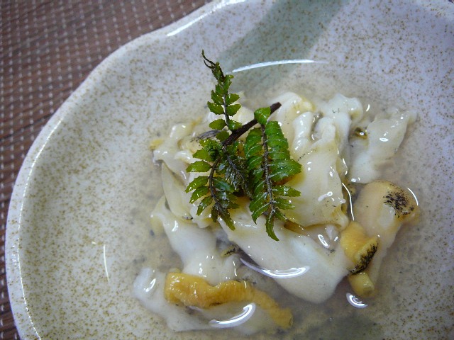 「真つぶの昆布出汁締め」というか「真つぶの水貝(昆布出汁風味)」的料理。