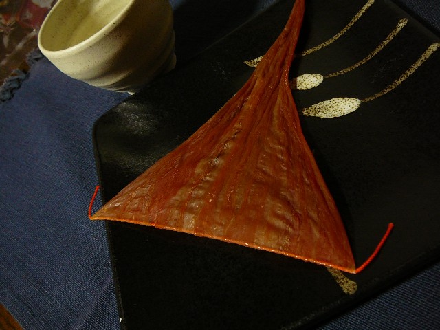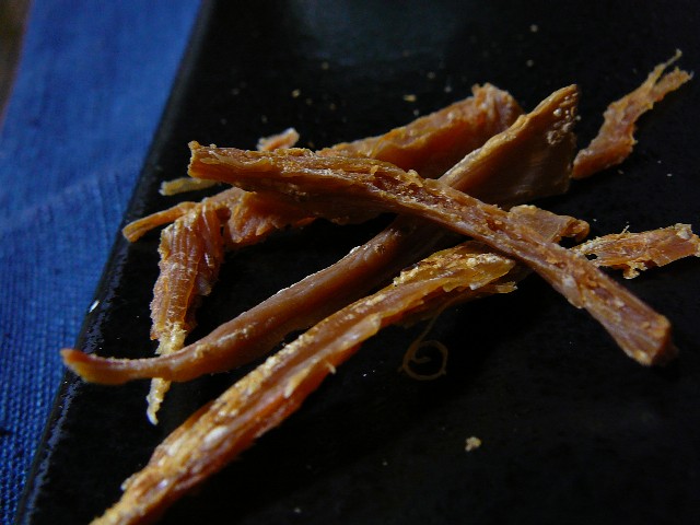 一般的な食べ方は、さっと焙って細く裂いてちょっとづつ摘むらしい。