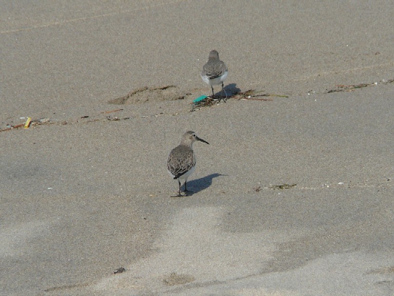 この荒んだ浜にエサを探し歩く「ハマシギ」(恐らく)。